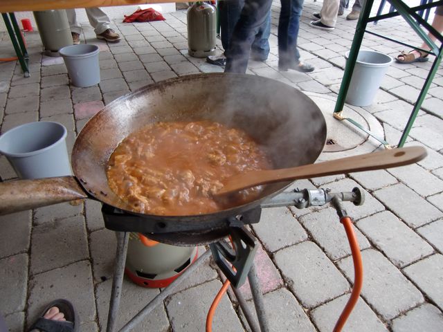 Zu Essen gab es reichlich. Angelockt von den wunderbaren Gerüchen kamen im Laufe der Veranstaltung noch zahlreiche Mitesser dazu. Am Ende waren sich alle einig, dass das mal wieder etwas Besonderes war (es muss nicht immer „Rote“ sein).