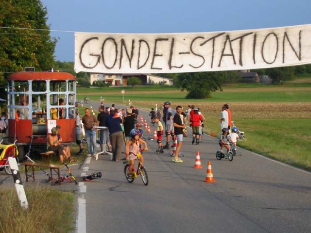 Die Verbindungsstrasse zwischen Bempflingen und Kleinbettlingen bekam auf einmal ein ganz anderes Gesicht. Wo man sonst binnen Sekunden im Auto vorbeirast, tummelte sich am einem Samstagabend alles was Rollen hat mitten auf der Fahrbahn. Inline-Skater, Bobbycars, Tretroller…Alle nutzten die Gelegenheit einmal ganz ohne Autoverkehr über die Landstrasse zu düsen. Auch an unserer Gondelstation herrschte zeitweise Hochbetrieb. Unsere leckeren HotDogs (Danke an die Fa. Maser) fanden reißenden Absatz und bei fetziger Musik und coolen Drinks herrschte super Stimmung , die mit anbrechender Nacht und der stimmungsvollen Beleuchtung immer besser wurde. Wenn man bedenkt, dass zwischen der Idee und der Umsetzung dieser Aktion kaum eine Woche lag, dann sind wir mit dem Erfolg mehr als zufrieden. Es war schön, dass trotz Urlaubszeit, so viele ganz spontan mit gemacht haben. Uns jedenfalls hat die Blitz-Aktion sehr viel Spaß gemacht. Dass dabei sogar ein paar Euro für den Ausbau unserer Gondel übrig blieben, ist ein netter Nebeneffekt. Von vielen wurden wir schon gefragt, wann denn die 2. Bempflinger und Kleinbettlinger Roll & Skate Night stattfinden wird. Ganz herzlichen Dank dem Bempflinger Musikverein für das Überlassen der Räumlichkeiten im Pumphäusle.