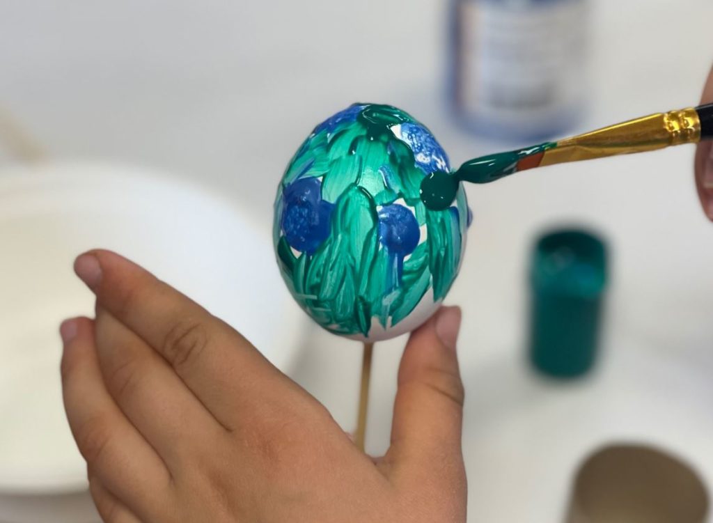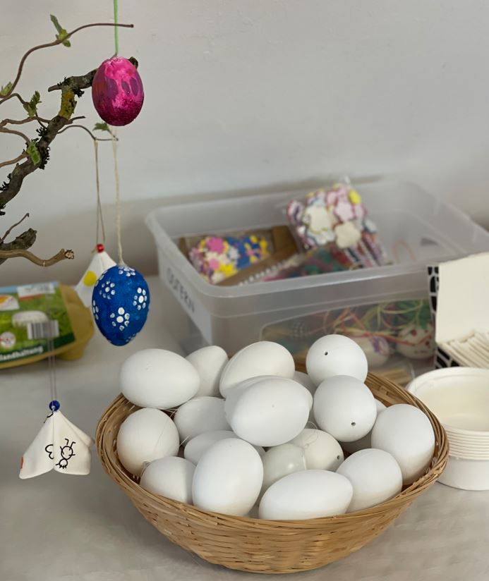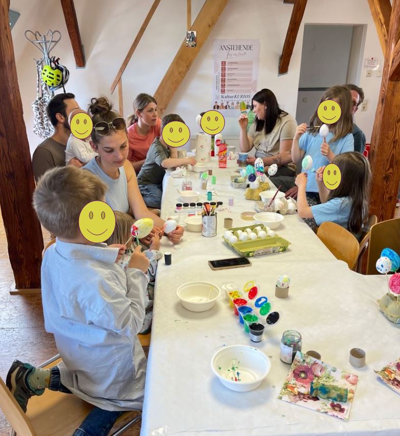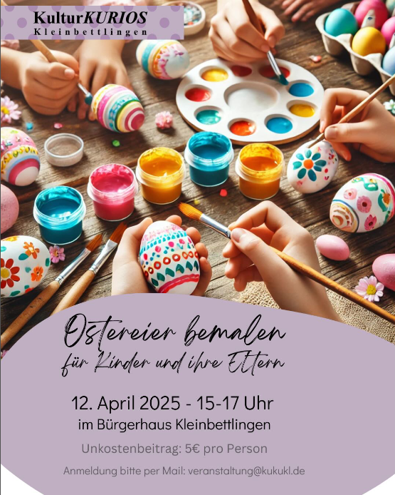 Am 12. April 2025 wurde es im Bürgerhaus Kleinbettlingen fröhlich und farbenfroh: Beim Ostereier-Bemalen und -Basteln konnten sich zehn Kinder gemeinsam mit ihren Eltern kreativ austoben. Mit Pinseln, Papier, Federn und viel Fantasie entstanden farbenprächtige Kunstwerke, die nicht nur Kinderaugen zum Leuchten brachten.