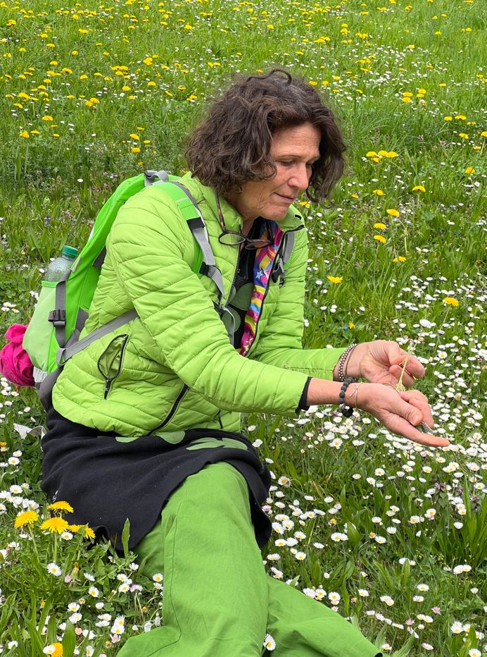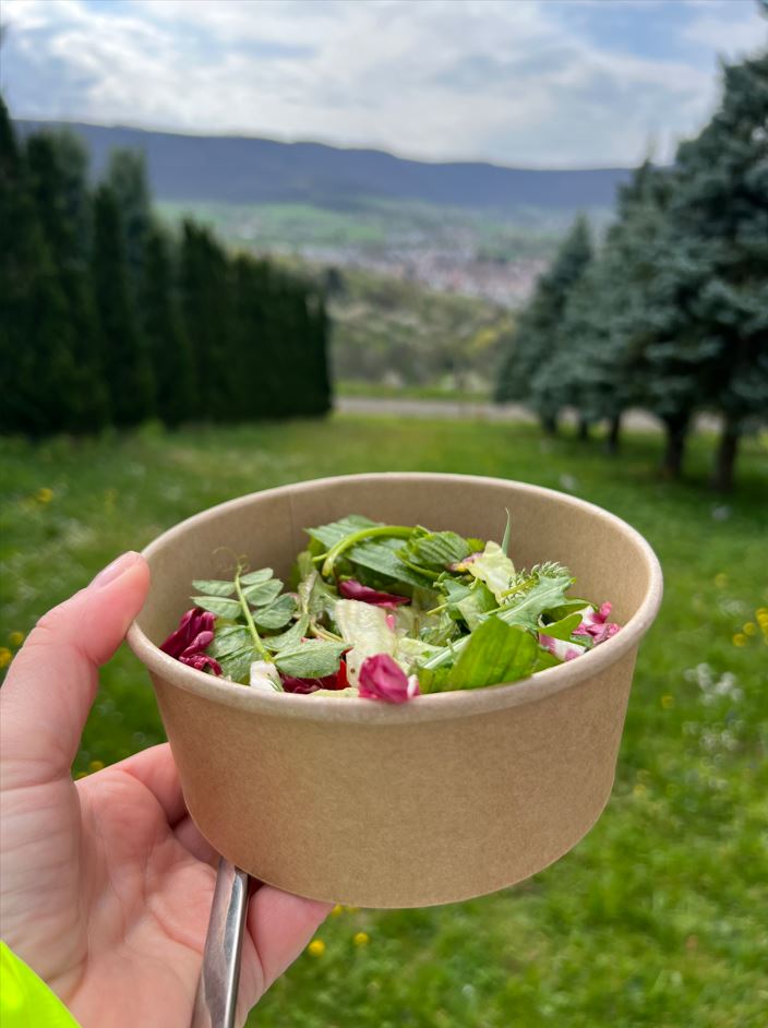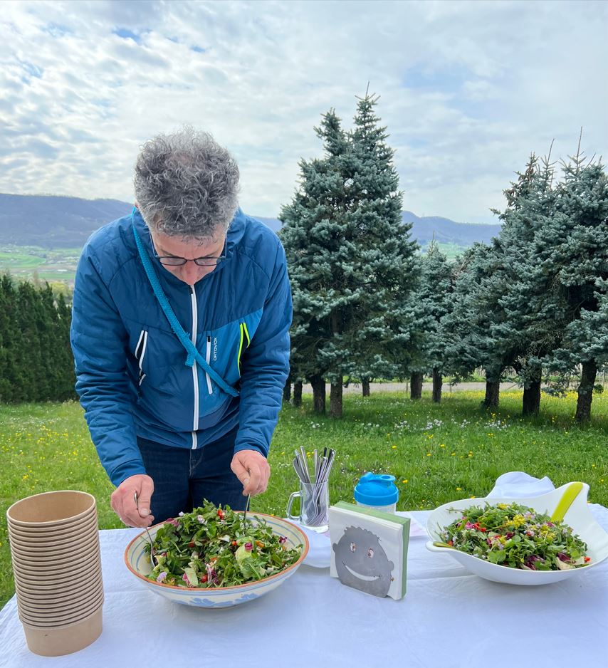 Geleitet wurde die Wanderung von der erfahrenen Kräuterexpertin Christine Egerter, die mit viel Herzblut und Fachwissen durch die Welt der heimischen Wildpflanzen führte. Bereits an der ersten Station, einer kleinen Gartenparzelle oberhalb der Weinberge, wurde nicht nur gelauscht, sondern auch geschlemmt: Ein frischer Wildkräutersalat sorgte für einen geschmackvollen Auftakt und stimmte die Gruppe auf die kommenden Entdeckungen ein.