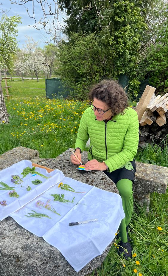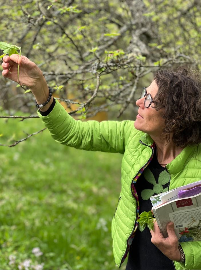 Der anschließende Rundgang am Fuße der Weinberge bot reichlich Gelegenheit, typische Frühlingskräuter der Region kennenzulernen – darunter Löwenzahn, Labkraut, Spitzwegerich, Bärlauch, Schafgarbe, Brombeerblättertriebe, Gemskresse und der allseits unterschätzte Giersch. Christine Egerter erklärte anschaulich, woran man die Pflanzen erkennt, wie man sie gefahrlos sammelt und welche Heilkräfte ihnen seit jeher nachgesagt werden. Dabei durften die Teilnehmenden immer wieder probieren und sich selbst ein Bild vom Aroma der Natur machen.