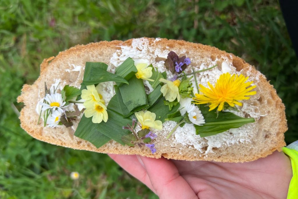 Den Abschluss bildete ein echtes Highlight: Ein „Klatschbrot“ – frisches Brot mit Butter, liebevoll belegt mit den zuvor gesammelten Kräutern. Ein einfacher, aber eindrucksvoller Genuss, der die Teilnehmenden mit einem Lächeln verabschiedete.