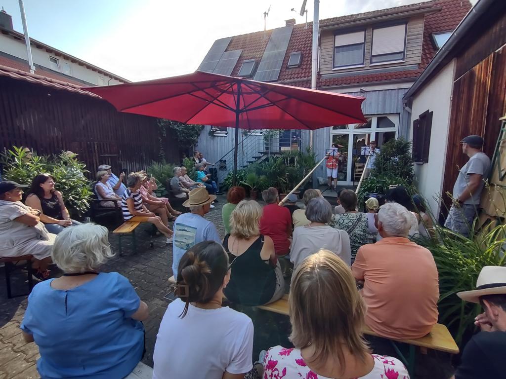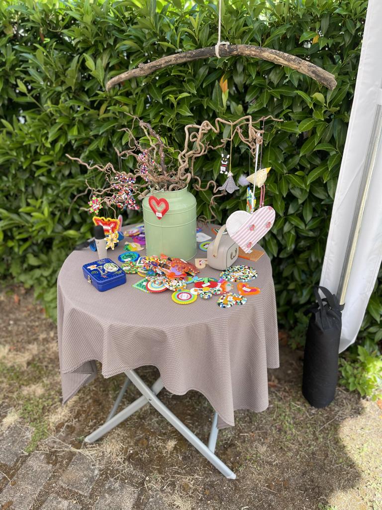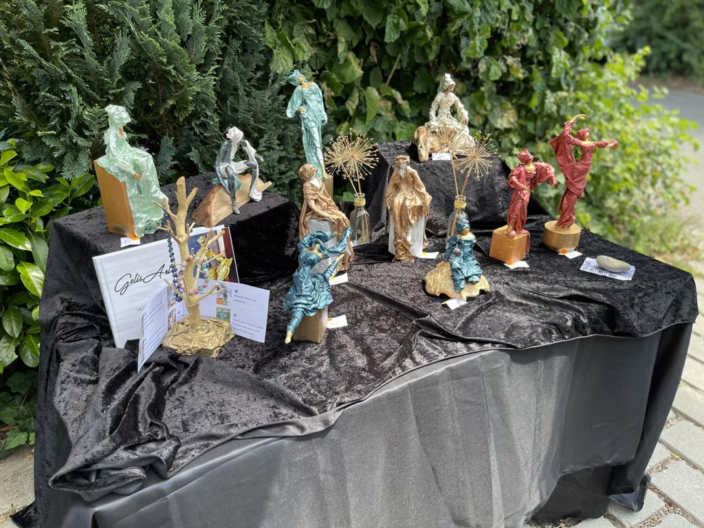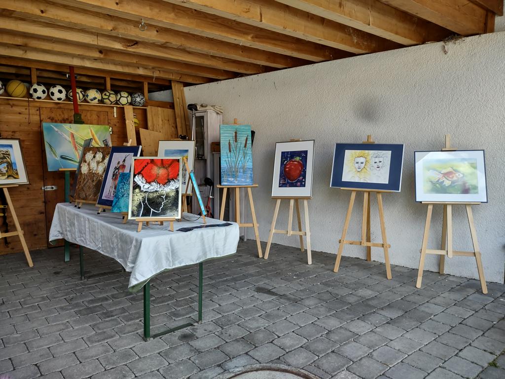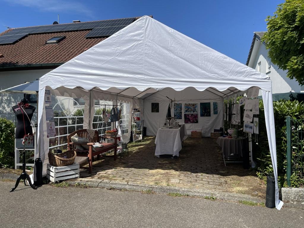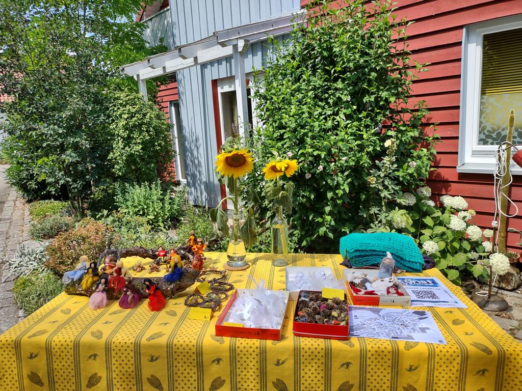 Insgesamt zehn Hobbykünstler aus Kleinbettlingen und Bempflingen präsentierten ihre Arbeiten im eigenen Garten oder in der Einfahrt – von Aquarellen und Line-Art über Skulpturen und Textiles bis hin zu Drechselarbeiten und Amigurumis. Auch die Kinder des Kindergartens beteiligten sich mit einer Vernissage ganz besonderer Kunstwerke.