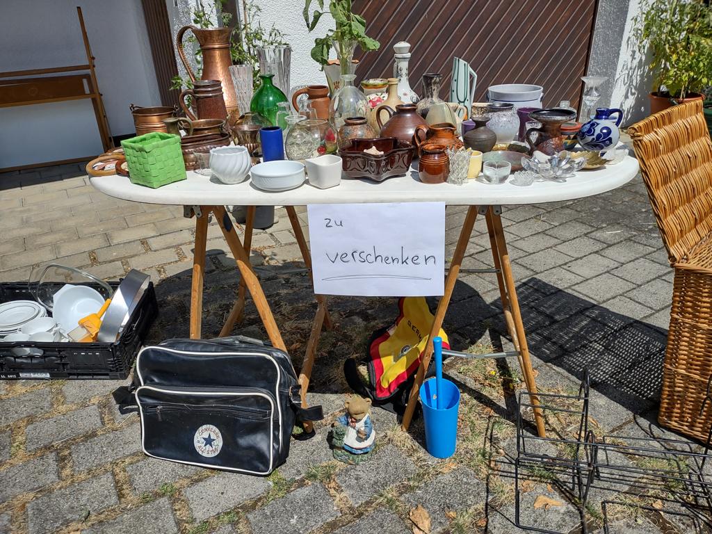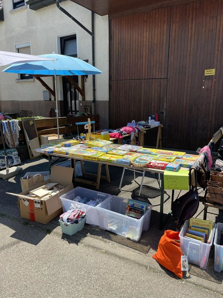 Das gleiche Prinzip galt auch für den Garagenflohmarkt. Mehr als 20 Haushalte machten mit, räumten Keller und Dachböden leer und verwandelten Einfahrten und Vorgärten in kleine Verkaufsstände – ganz im Sinne von Nachhaltigkeit, Kreativität und Dorfgemeinschaft.