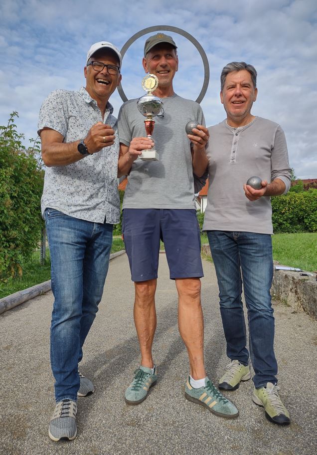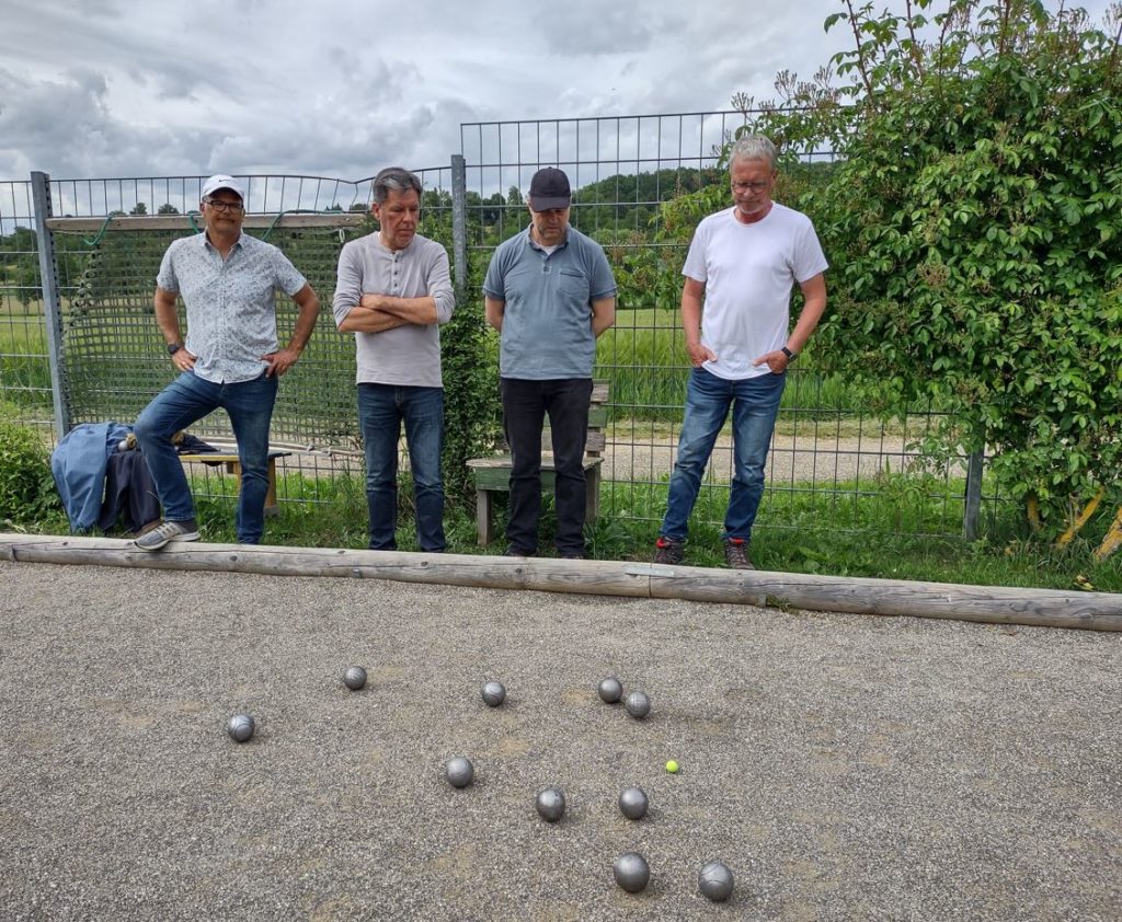 Am 29. Mai 2025 spielten Eric, Max, Hanse, Helmut, Michel und Matthias um den VatertagsBouleWanderPokal. Sieger dieses Jahr: Matthias!